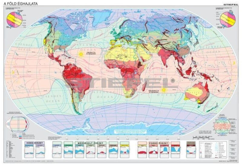 A térkép a magyar földrajzoktatás követelményeinek megfelelően ábrázolja a föld éghajlati övezeteit. Külön foglalkozik az emberi beavatkozás negatív hatásaival. Iskolai falitérkép, fóliázott-lécezett kivitelben. Hosszú élettartamú, nagy szakítószilárdságú fóliabevonattal, írható-letörölhető felülettel.